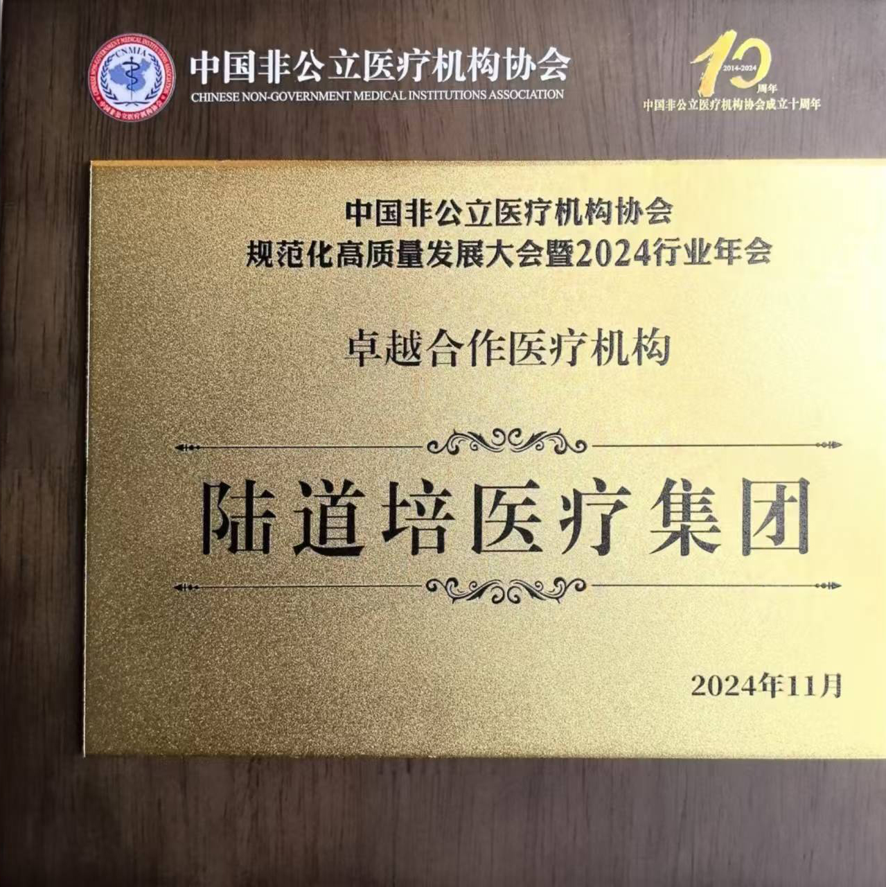 陸道培醫(yī)療集團榮獲中國非公立醫(yī)療機構(gòu)協(xié)會卓越合作醫(yī)療機構(gòu)稱號。