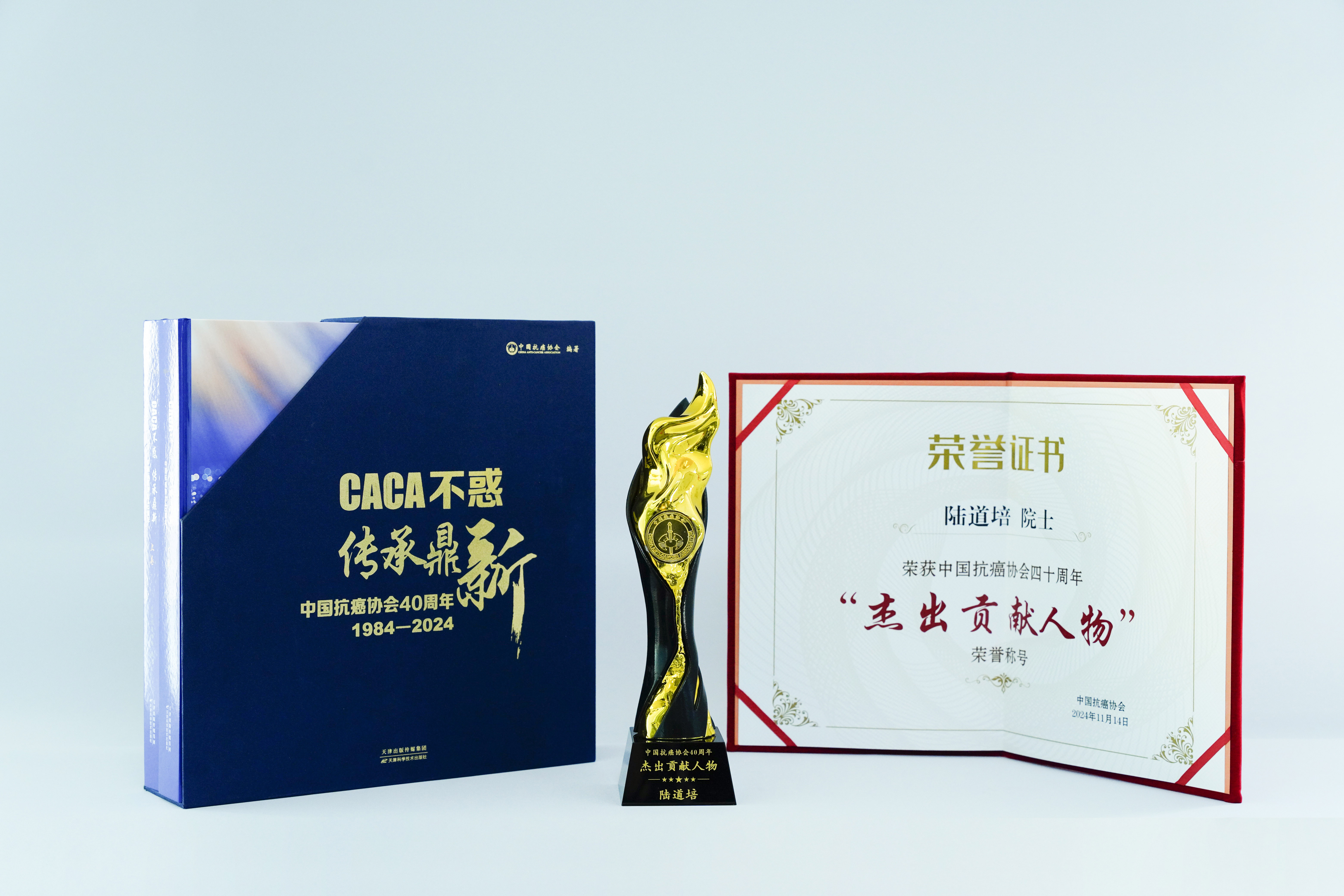 中國抗癌協(xié)會在2024中國整合腫瘤學(xué)科普大會暨中國抗癌協(xié)會成立40周年慶典活動上,授予陸道培院士“中國抗癌協(xié)會杰出貢獻人物”稱號,并贈送《中...