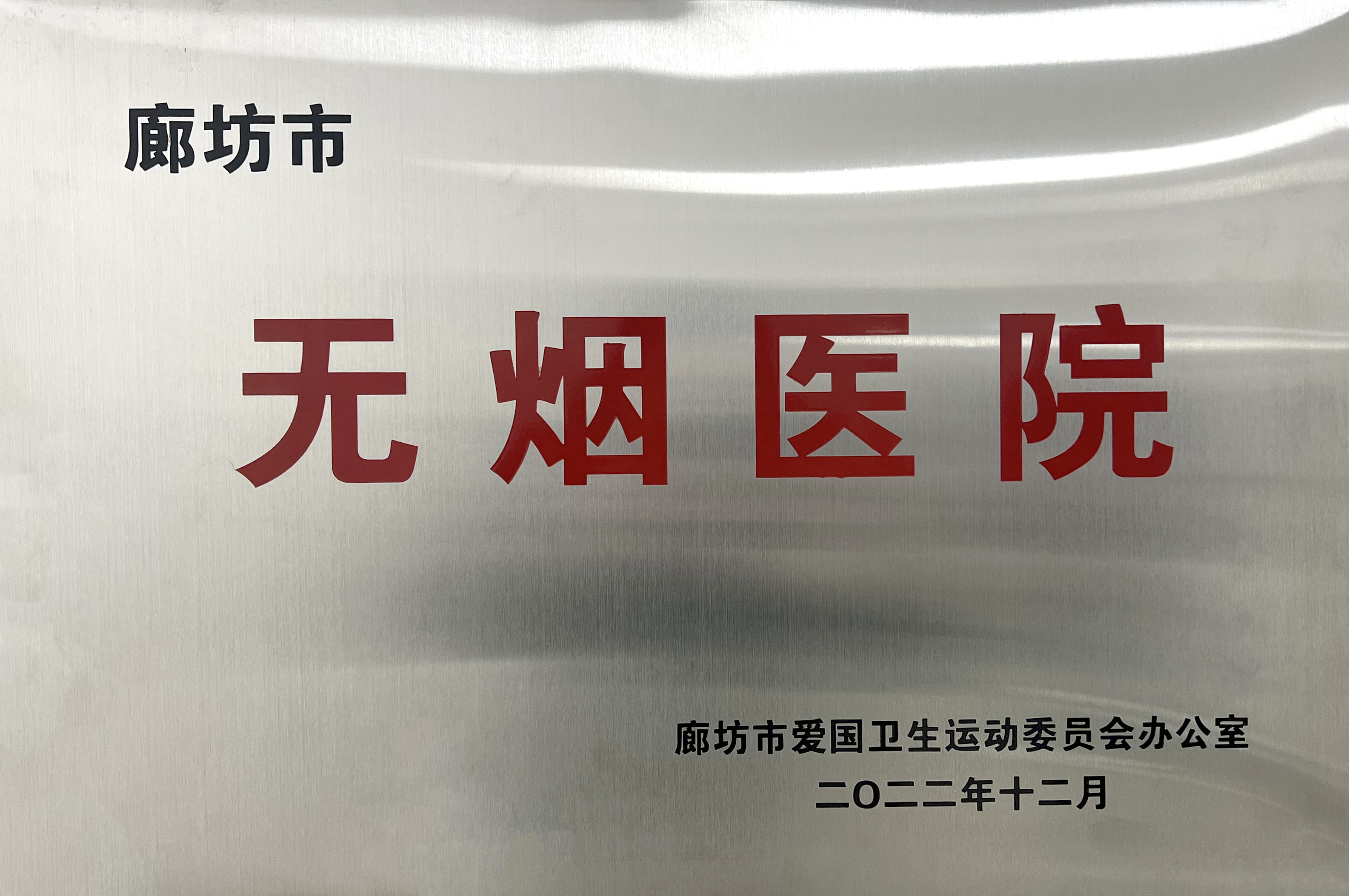 由廊坊市愛國(guó)衛(wèi)生運(yùn)動(dòng)委員會(huì)辦公室為河北燕達(dá)陸道培醫(yī)院頒發(fā)“無(wú)煙醫(yī)院”。
