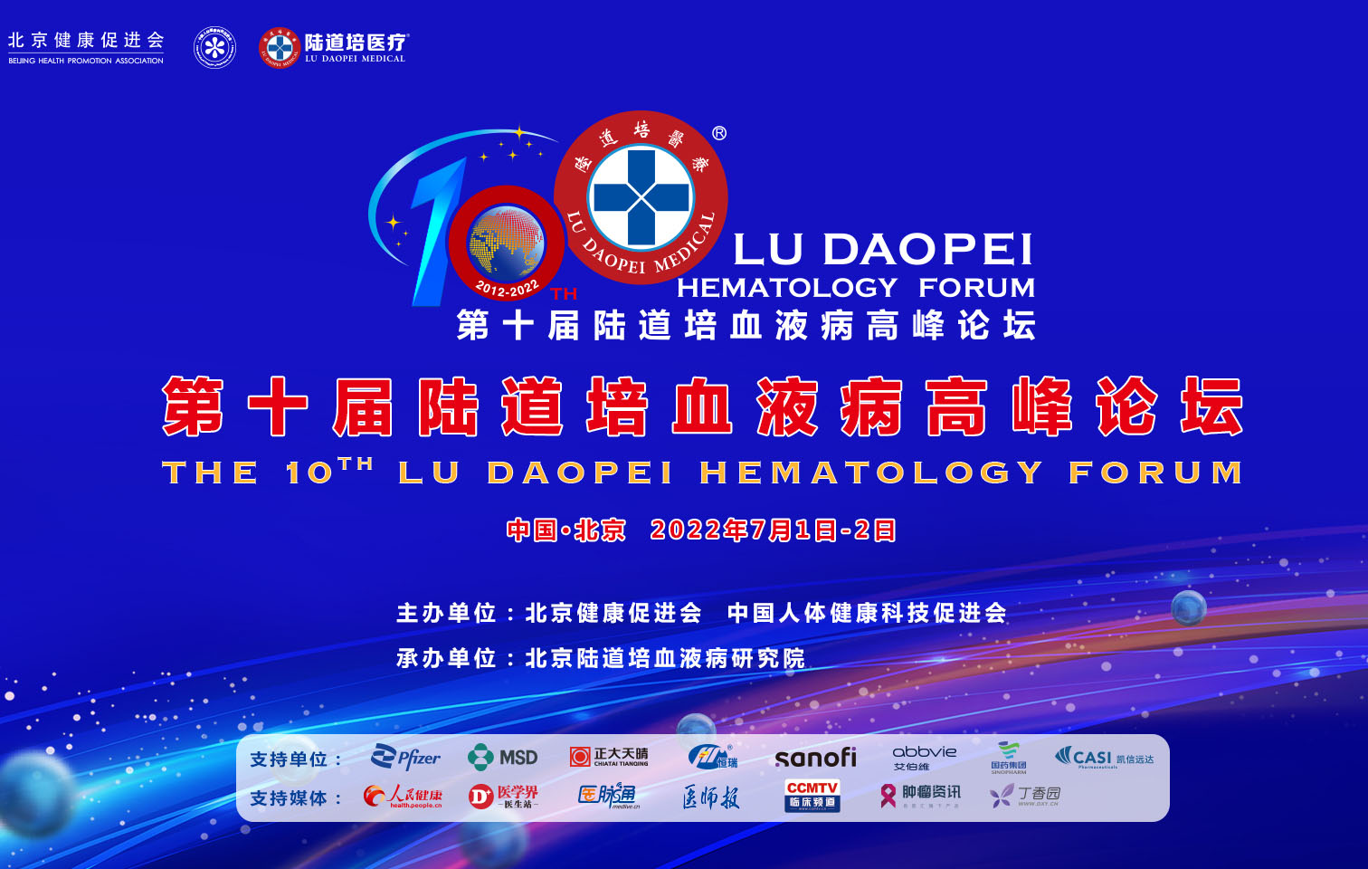 2022年7月1日,由北京健康促進會和中國人體健康科技促進會主辦“第十屆陸道培血液病高峰論壇”在萬眾... 【詳情】